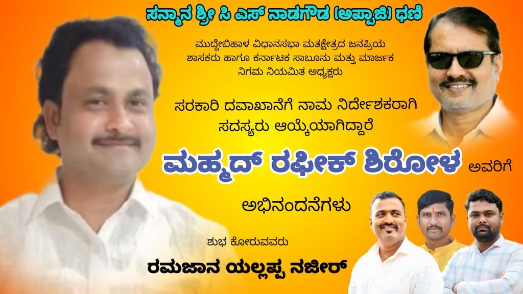 ಮುದ್ದೇಬಿಹಾಳ: ವಿಧಾನಸಭಾ ಮತಕ್ಷೇತ್ರದ ಜನಪ್ರಿಯ ಶಾಸಕರು ಹಾಗೂ ಕರ್ನಾಟಕ ಸಾಬೂನು ಮತ್ತು ಮಾರ್ಜಕ ನಿಗಮ ನಿಯಮಿತ ಅಧ್ಯಕ್ಷರು ಸನ್ಮಾನ ಶ್ರೀ ಸಿ ಎಸ್ ನಾಡಗೌಡ (ಅಪ್ಪಾಜಿ ಧಣಿ) ಅವರು ಕಾಂಗ್ರೆಸ್ ಯುವ ಮುಖಂಡ ಮಹ್ಮದ್ ರಫೀಕ್ ಶಿರೋಳ ಅವರನ್ನು ಮುದ್ದೇಬಿಹಾಳ ತಾಲೂಕಿನ ಸರ್ಕಾರೀ ಆಸ್ಪತ್ರೆಯ ನಾಮ ನಿರ್ದೇಶಕ ಸದಸ್ಯರಾಗಿ ಆಯ್ಕೆ ಮಾಡಿದ್ದಾರೆ. ಇನ್ನು ಇವರನ್ನು ಆಯ್ಕೆ ಮಾಡಿದಕ್ಕೆ ಮೊಹ್ಮದ ರಫೀಕ್ ಶಿರೋಳ ಅವರು ಶಾಸಕರಾದ ಅಪ್ಪಾಜಿ ನಾಡಗೌಡ ಅವರಿಗೆ ಹೃದಯ ಪೂರ್ವಕವಾಗಿ ಧನ್ಯವಾದಗಳು ಧಣಿ ಜೀ ಎಂದು ಸೋಷಿಯಲ್ ಮೀಡಿಯಾದಲ್ಲಿ ಬರೆದುಕೊಂಡಿದ್ದಾರೆ.